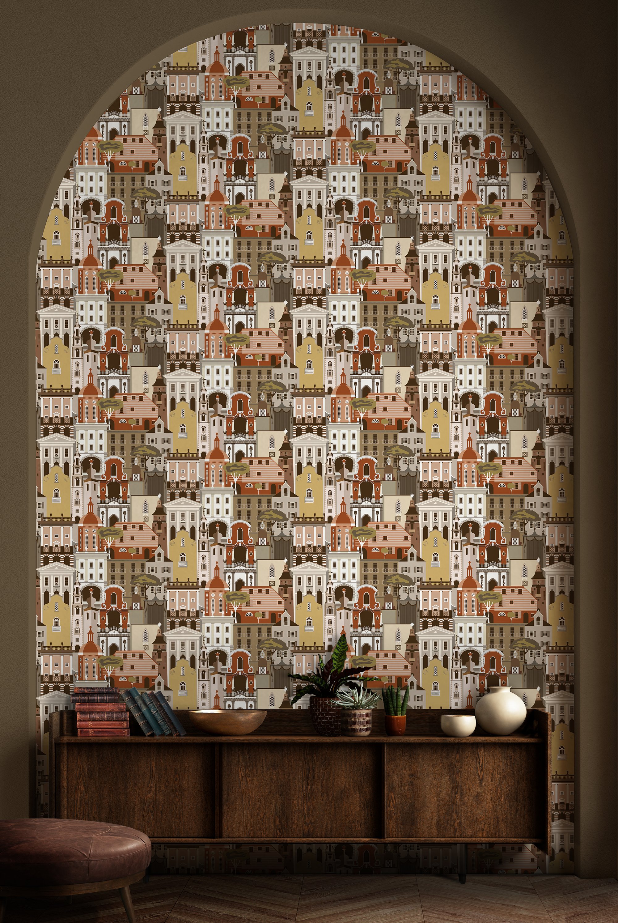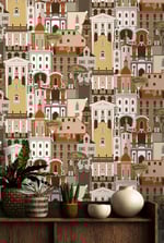 Campanile depicts a cascade of buildings in the Italianate style, inspired by the eccentric architecture of Portmeirion Village, the ‘ideal village’ designed and constructed by Clough Williams-Ellis between 1925 and 1973 in North Wales.