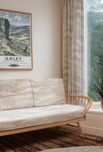 Moordale (the distance between us) features the North Yorkshire Moors and Yorkshire Dales, where Mark and Keith of Mini Moderns spent their teenage years. Icons of the area included in the sweeping landscape print are Roseberry Topping and the Cow and Calf at Ilkley..