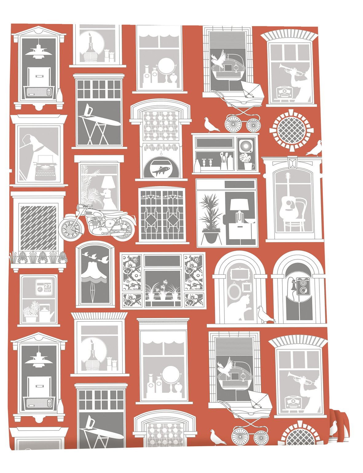 The wallpaper that launched our Saturday Night/Sunday Morning collection, One Day features iconic scenes from some of our favourite kitchen-sink dramas from the 40s, 50s and 60s, including: L-Shaped Room, Georgy Girl, Up the Junction, The Leather Boys, A Taste of Honey, Room at the Top, It Always Rains on a Sunday, Billy Liar, Look Back in Anger, Kes and Poor Cow.