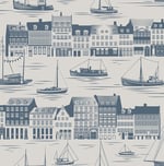 Inspired by our collection of hand-painted mid-century plates by Scandinavian artist Inger Waage, we visited Copenhagen one sunny Easter weekend. Our first sight of bustling Nyhavn, with boats sailing past its colourful townhouses, has stayed with us for many years - and became the inspiration for this design.