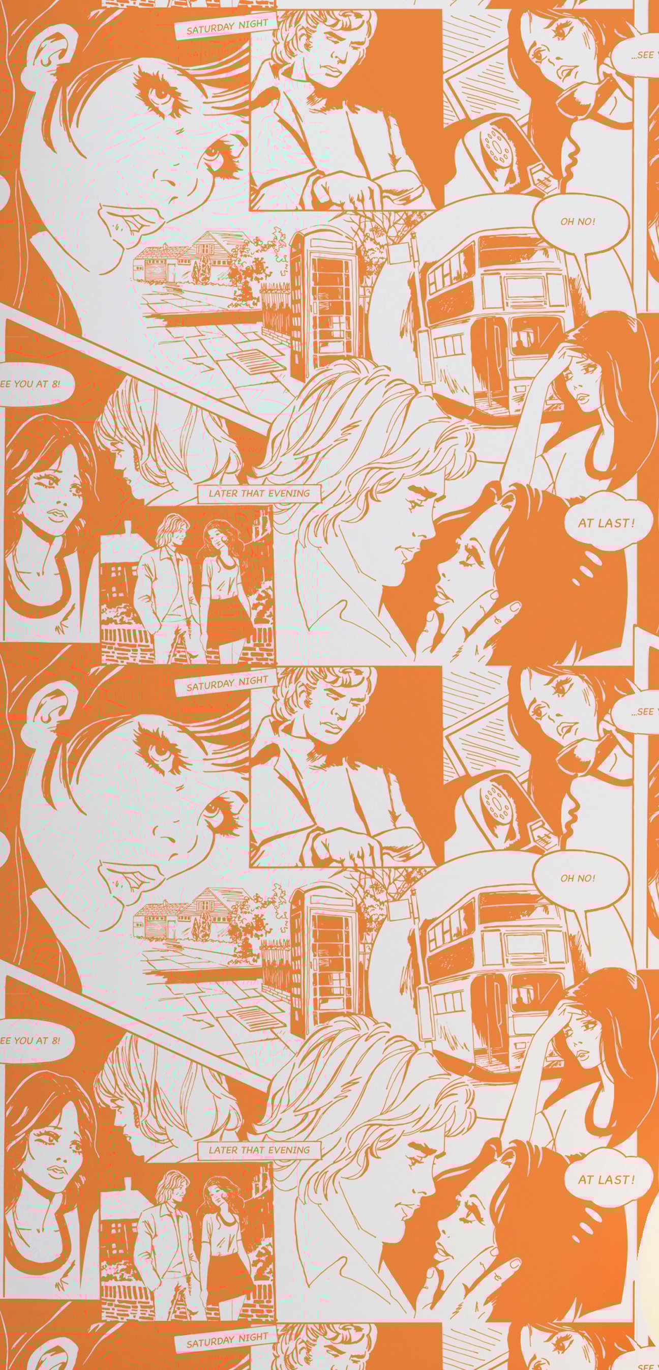 Inspired by romantic comic strips we read in our sisters' magazines when we were young, True Romance is the fourth wallpaper in the Saturday Night/Sunday Morning Collection.
