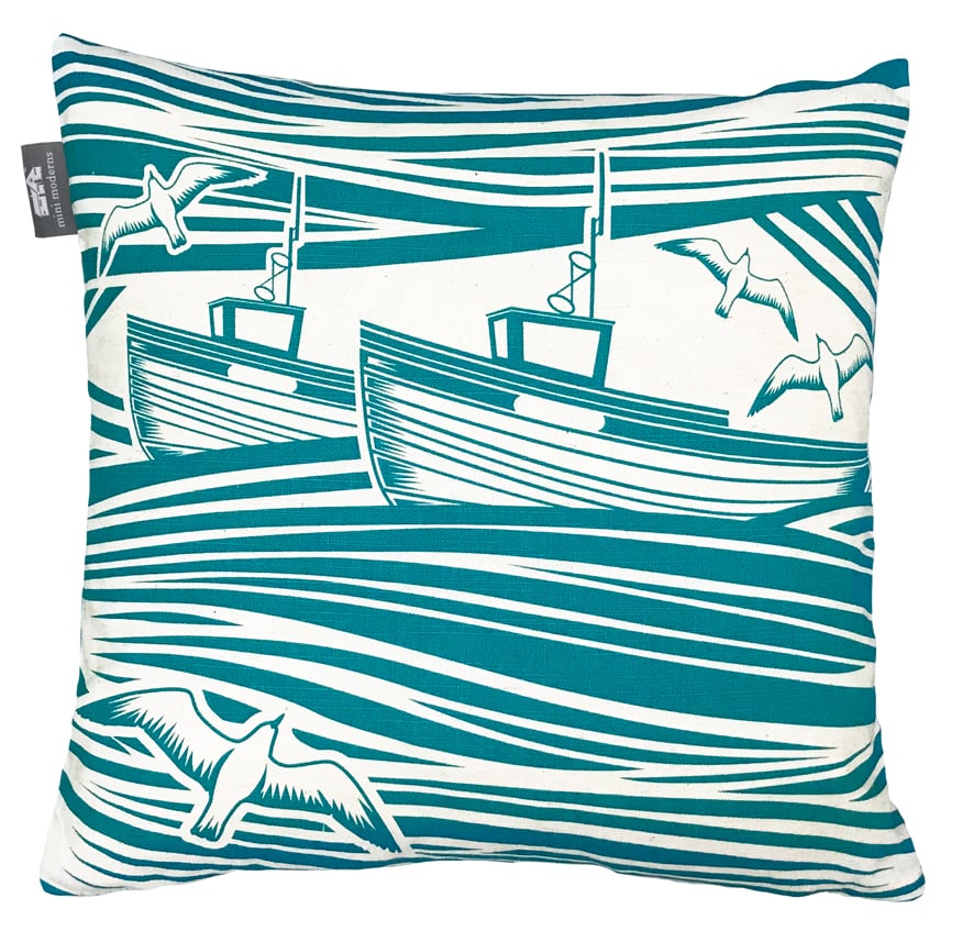 Inspired by 1950s linocuts, our cotton/linen Whitby cushion features one of our most iconic prints on the front with a block colour on the reverse.