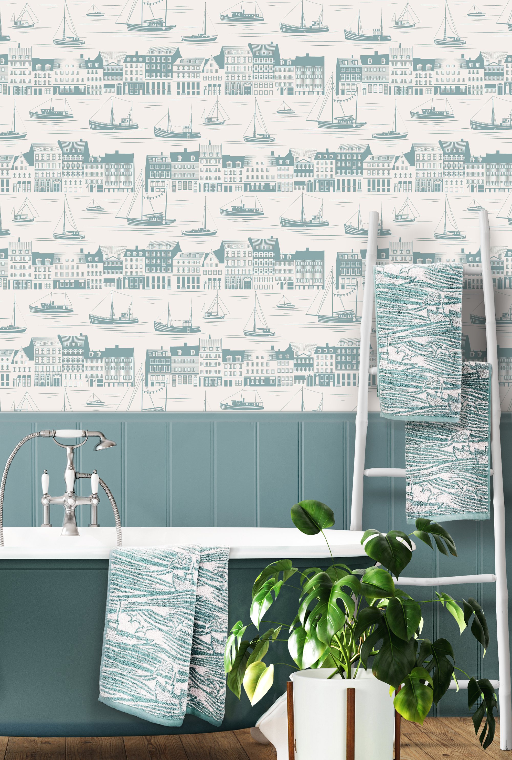 Our much-loved Whitby design has become something of a nautical classic. Inspired by 1950s linocuts, its bold wave motif captures the majesty of the open sea. These towels are sure to look at home, whether in your bathroom or on your favourite beach.